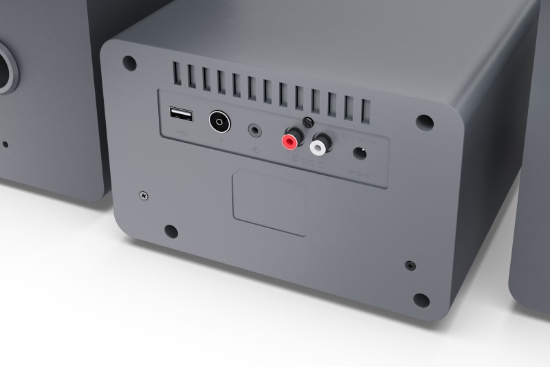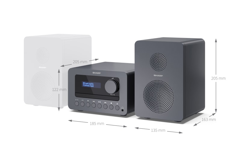 Um moderno sistema Micro Hi-Fi com sintonizador FM (com RDS), leitor de CD e transmissão de música sem fios via Bluetooth.